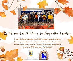 Representación teatralizada con música en directo a cargo de artistas del CEIP Ginés Díaz - San Cristóbal. Dirigida a niñas y niños de 3 a 6 años. Entrada libre hasta completar aforo.
